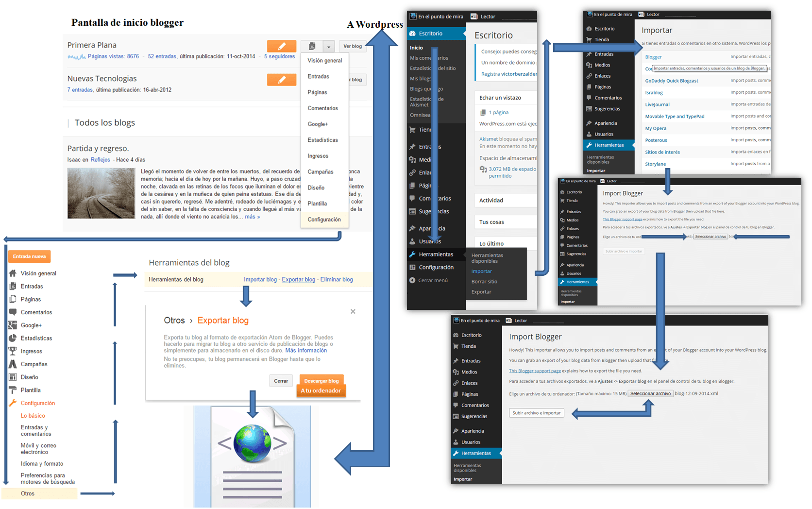 (De Blogspot a WordPress; ejemplo superposición; entradas de mi blog: modernismo; Madonna y Marina and the Diamonds; 12 discos injustamente ignorados; contraportada de hijos de la anarquía).